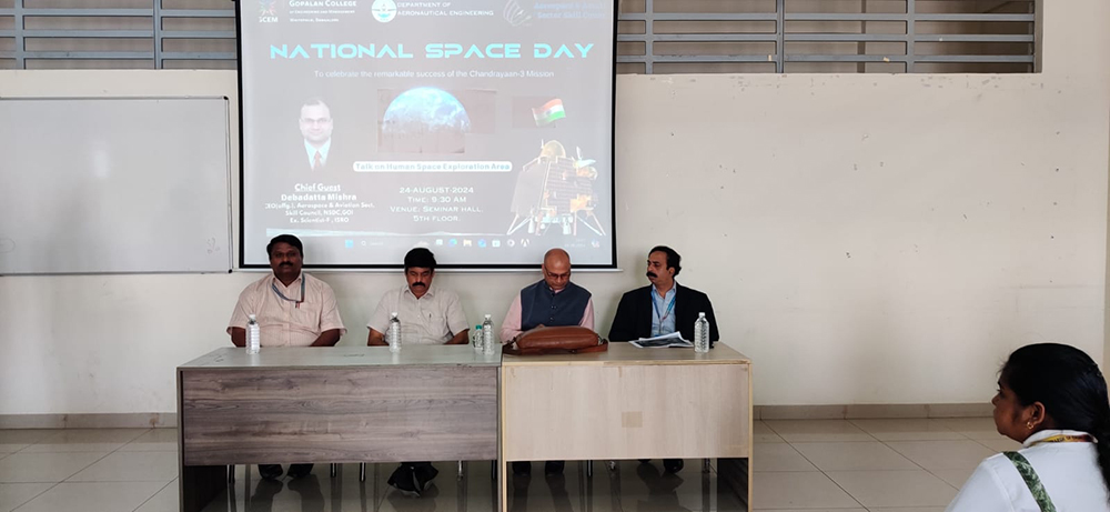 RADIANCE, a celebration in honor of National Science Day, took place on 28th February 2024 at the Seminar Hall of Gopalan College of Engineering and Management. The event aimed to inspire scientific temperament, foster innovation, and commemorate the remarkable achievements of Indian science. Dr. P V Venkitakrishnan, a distinguished scientist with a profound contribution to the field, graced the occasion as the Chief Guest.