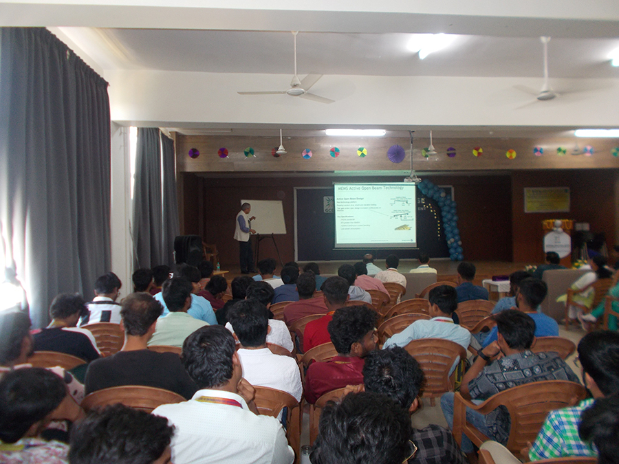 On Day 2, Dr. Shankara Prasad (IIT Guwahati) presented a lecture on IC packaging, discussing chip integration and packaging trends, followed by an industry visit to Bharat Electronics Limited (BEL), Bengaluru, where participants observed MEMS applications in defense and communication systems.