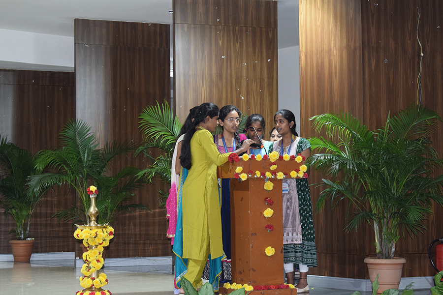 The first year orientation program for the academic year 2024-25 commenced with an invocation of Lord Ganesha’s divine blessings, supported by the Gopalan management, CEO, and Principal. The inaugural session was graced by the presence of Dr. C.M. Bhaskar Reddy, CEO of Gopalan Institutions, Dr. Arun Vikas Singh, Principal of GCEM, along with the Heads of Departments, placement officers, and other dignitaries. The program began with the ceremonial lighting of the lamp by the dignitaries.