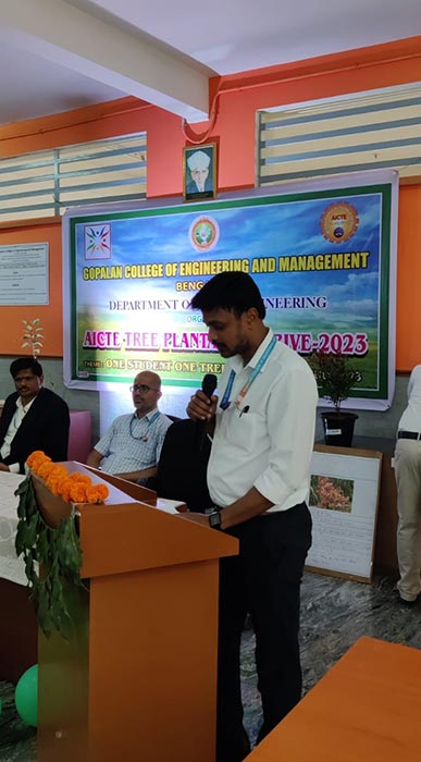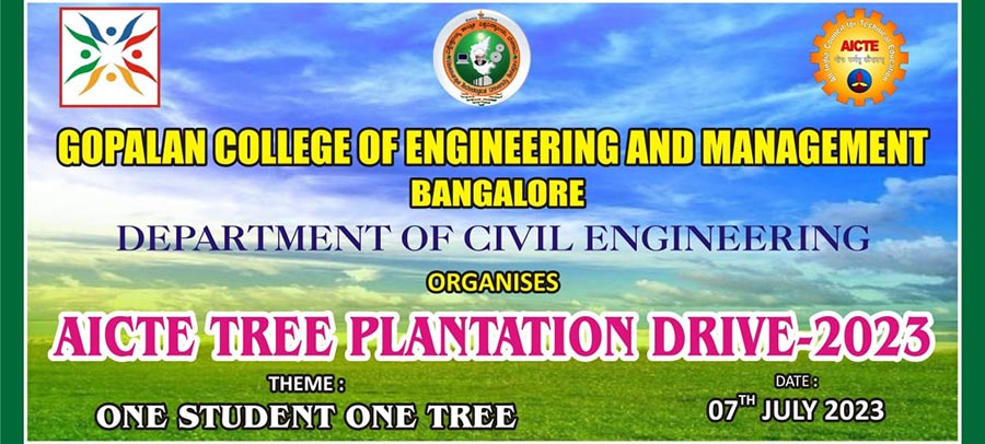 As per the direction of AICTE, Tree Plantation Drive – 2023 was successfully conducted on 07/07/2023 at GCEM. The Department of Civil Engineering organized the program. More than 50 plants of various species were planted in campus by the students of Civil Engineering and Aeronautical Engineering of GCEM.
