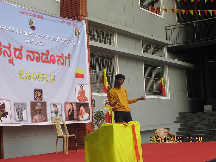 Prof. Saviraj, Assistant Professor, AE Department, GCEM, delivered speech on Kannada Rajyotsava and ended by vote of thanks at 011.00 a.m.