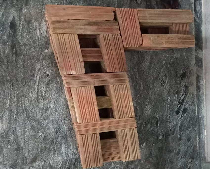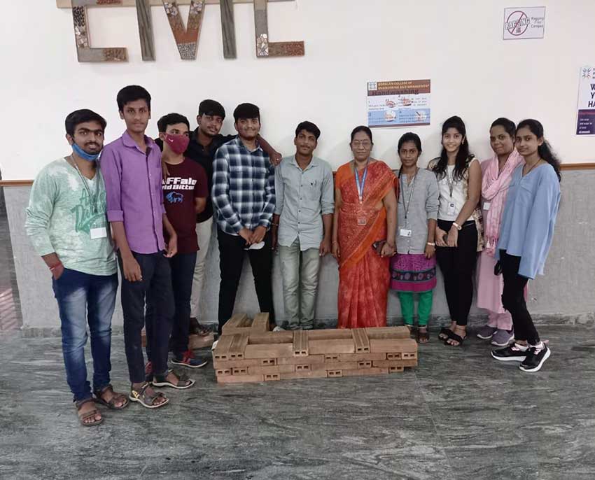 The students are encouraged to learn the topics in a practical manner. Our 2nd year students were practicing to build the RAT TRAP BOND method of wall construction.