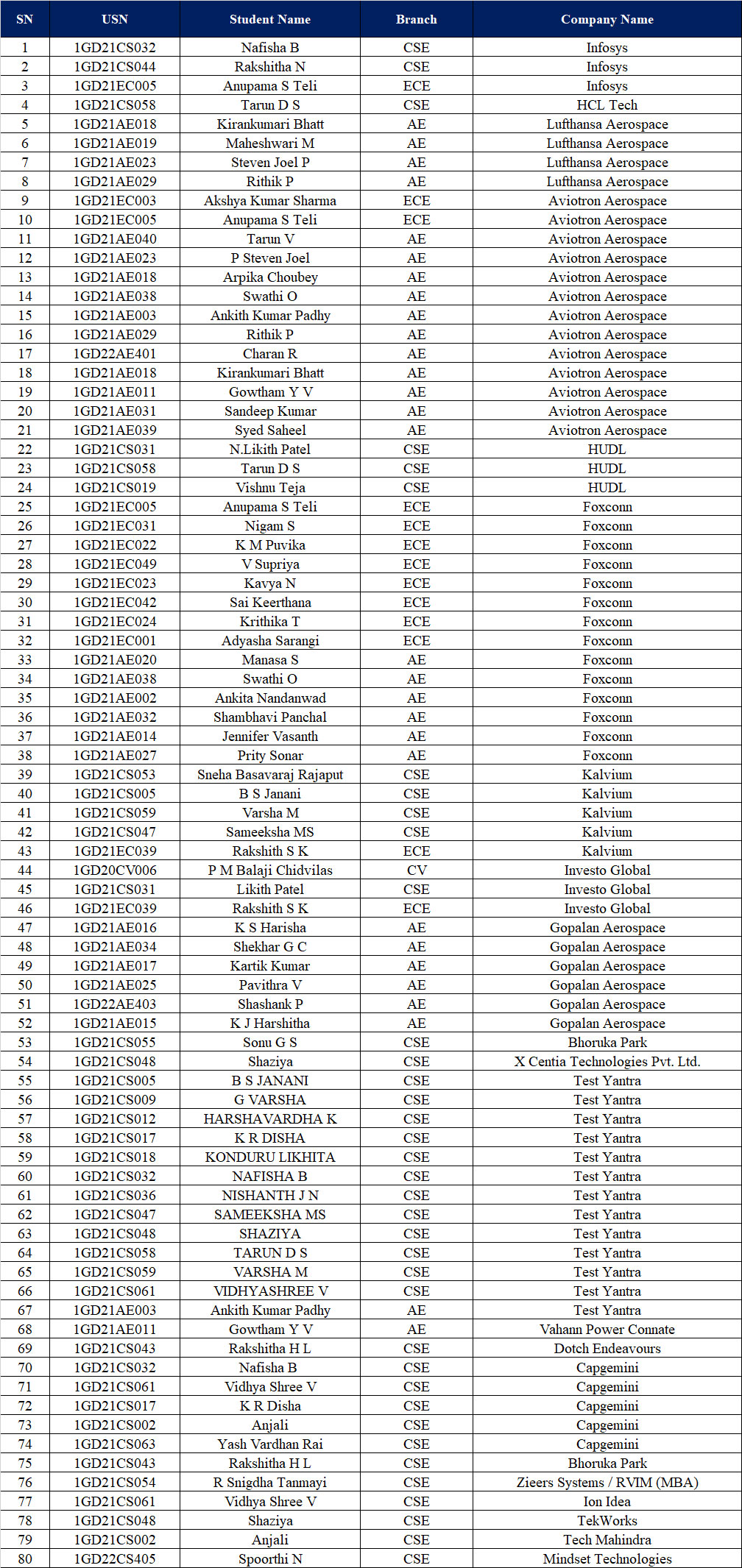 Congratulations to the placed students 2024-2025!