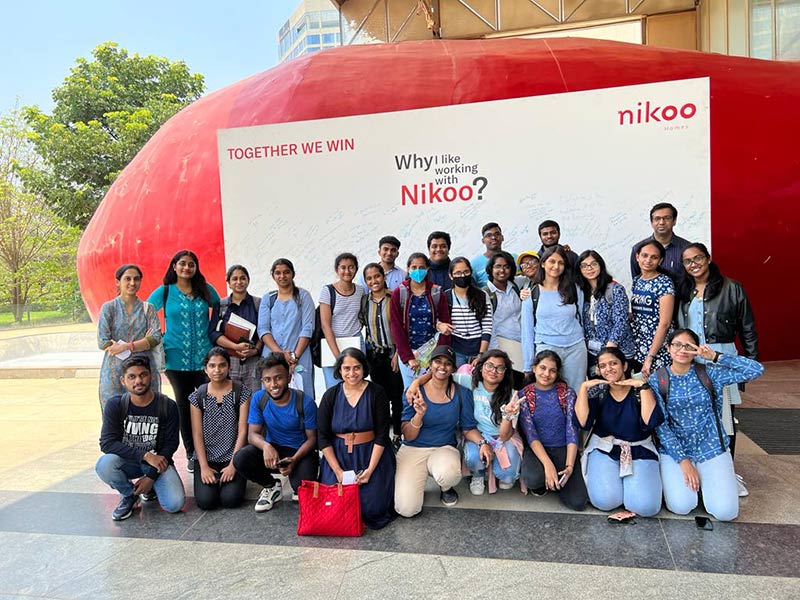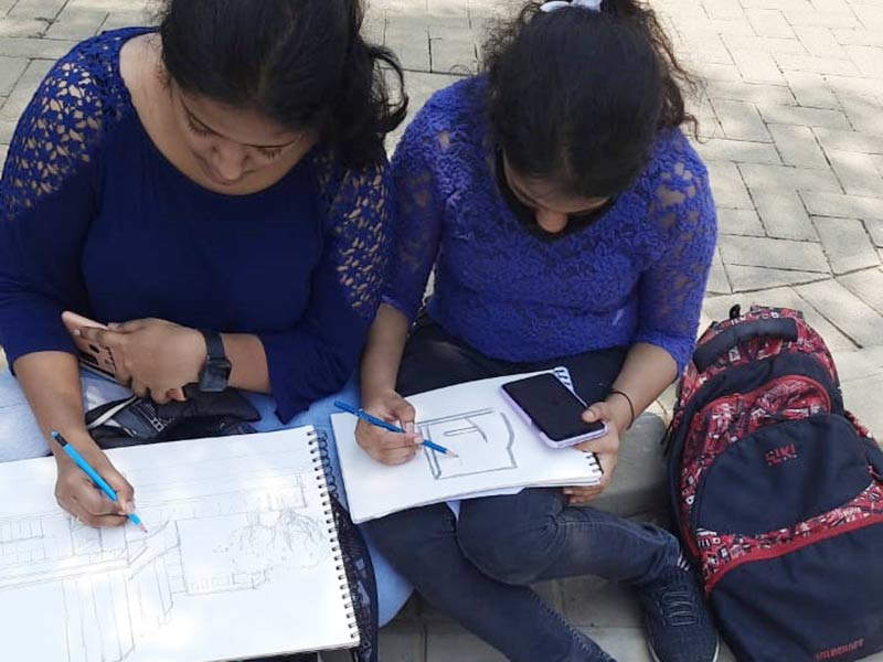 As a part of Architectural Design- IV, that deals with understanding from space to dwelling: An understanding of what it means to dwell in a space/s, and to further explore as to why and how people choose to dwell together, 4th semester students were taken to Bharatiya Nikoo Homesto understand space-planning and design-thinking in Architecture for Housing projects.