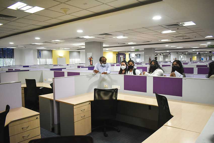 An Architecture Site study visit was conducted on 3.12.2021 for the benefit of VII Semester students of Architecture at Gopalan Millenium Towers. The students of VII Semester were exposed to the nuances of office planning in the visit. The aim of the visit is to mainly understand Co-Working spaces in office environment and other planning parameters incorporated in the design of the facility. The students also had a chance to interact with on-site HVAC and Fire Fighting officers, who shared valuable technical information.