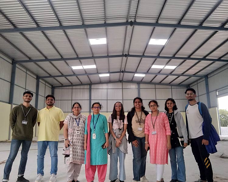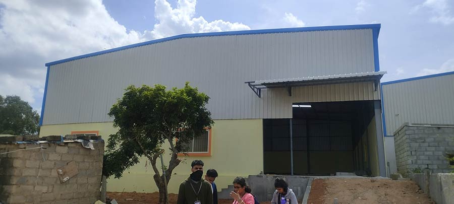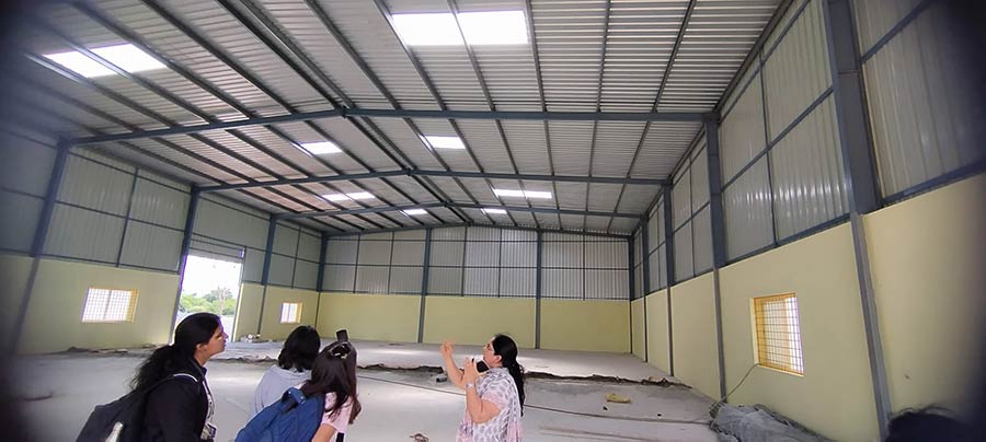 As part of MMBC V, the 5th Semester students visited a godown space in Whitefield to study Pre-Engineered Building (PEB) structures. They gained insights into the joinery and fixing details directly on-site.