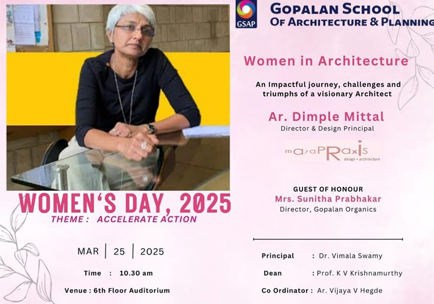 As the world came together to celebrate International Women’s Day and advocate for immediate action, the Gopalan School of Architecture and Planning organized a special event for its faculty, staff, and students. Renowned architect Dimple Mittal, Director and Design Principal of Maya Praxis, was invited to deliver a talk on Women in Architecture. The institution welcomed her to the event. She shared the inspiring journey of her career, walking students through her experiences and showcasing projects from conception to completion. Her insights encouraged students to pursue their ideas with integrity and passion. The event concluded with a certificate distribution ceremony for students who participated in the photography workshop.